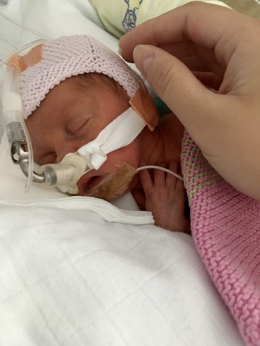 Ellie havde flere gange glemt at trække vejret – med fald i både puls og iltmætning – og var blevet blålig i mine arme. Det er noget de fleste præmature børn gør, og af samme årsag får de fleste også medicin, der skal hjælpe dem med at huske at trække vejret. Men det var lige forfærdeligt hver eneste gang det skete.