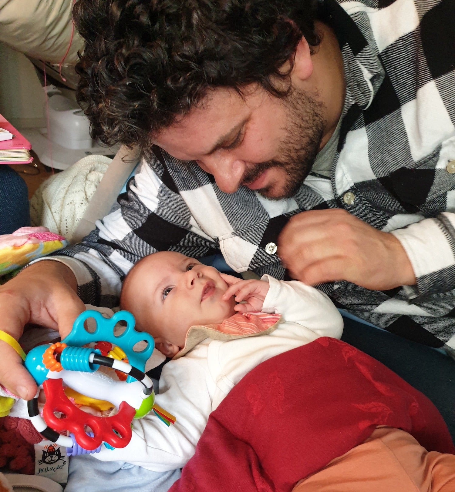 Heldigvis finder han selv derhen, han tager baby hver gang der ikke skal ammes eller soves, han står troligt og glor på kaffemaskinen i flere dage, da det pludselig er det eneste sted ungen vil opholde sig. Han gør gåturene med hunden så korte som muligt, han sikrer jeg får mad og vand og søvn så vidt det er muligt.