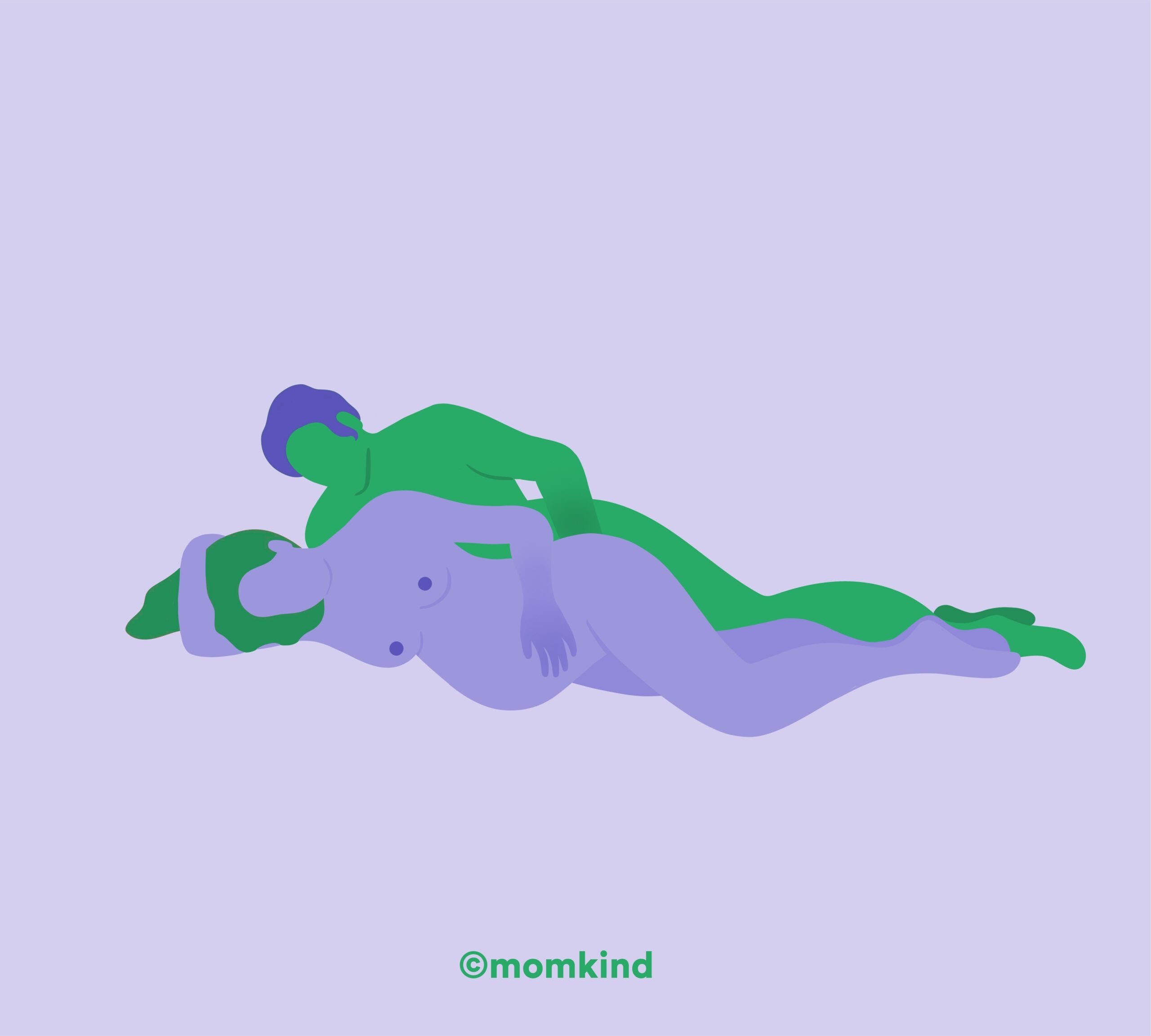 Det kan være rigtig rart at ligge på siden, når man ligger som gravid med stor mave. Især med lidt støtte under maven. Det kan være fra dynen eller en pude. Det er én af grundende til, at sex i ske også kan være en skøn måde at dyrke sex på. En anden god grund er, at I kan ligge helt tæt, og du kan blive omfavnet, uden maven bliver mast, trykket på eller er i vejen.