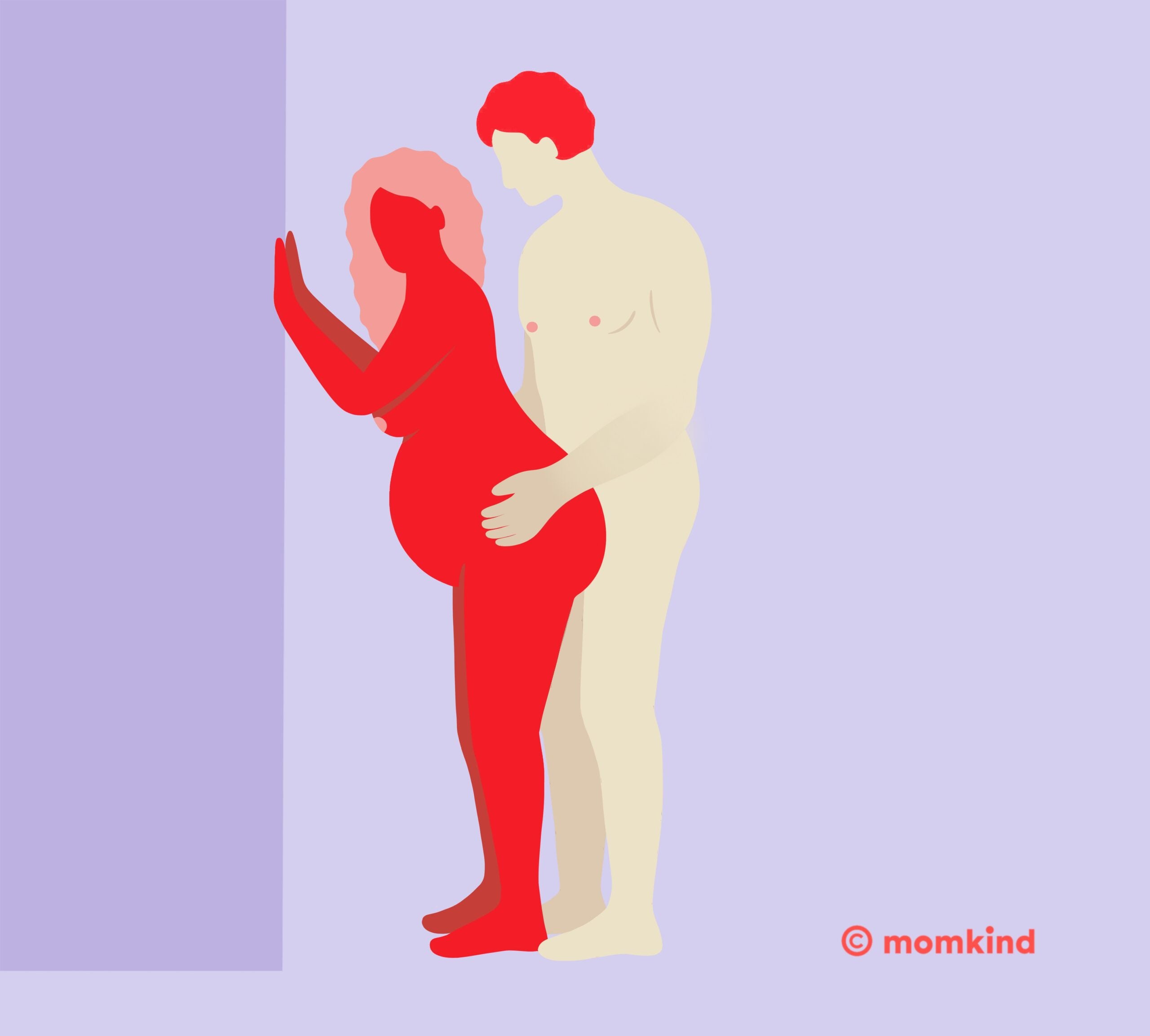 En anden komfortabel og dejlig måde at dyrke sex i graviditeten på er simpelthen stående. Ihvert fald, hvis du ikke døjer med rygsmerter eller bækkenløsning. Du kan eventuelt bøje dig lidt fremad mod en væg eller et bord og have noget at støtte dig til.