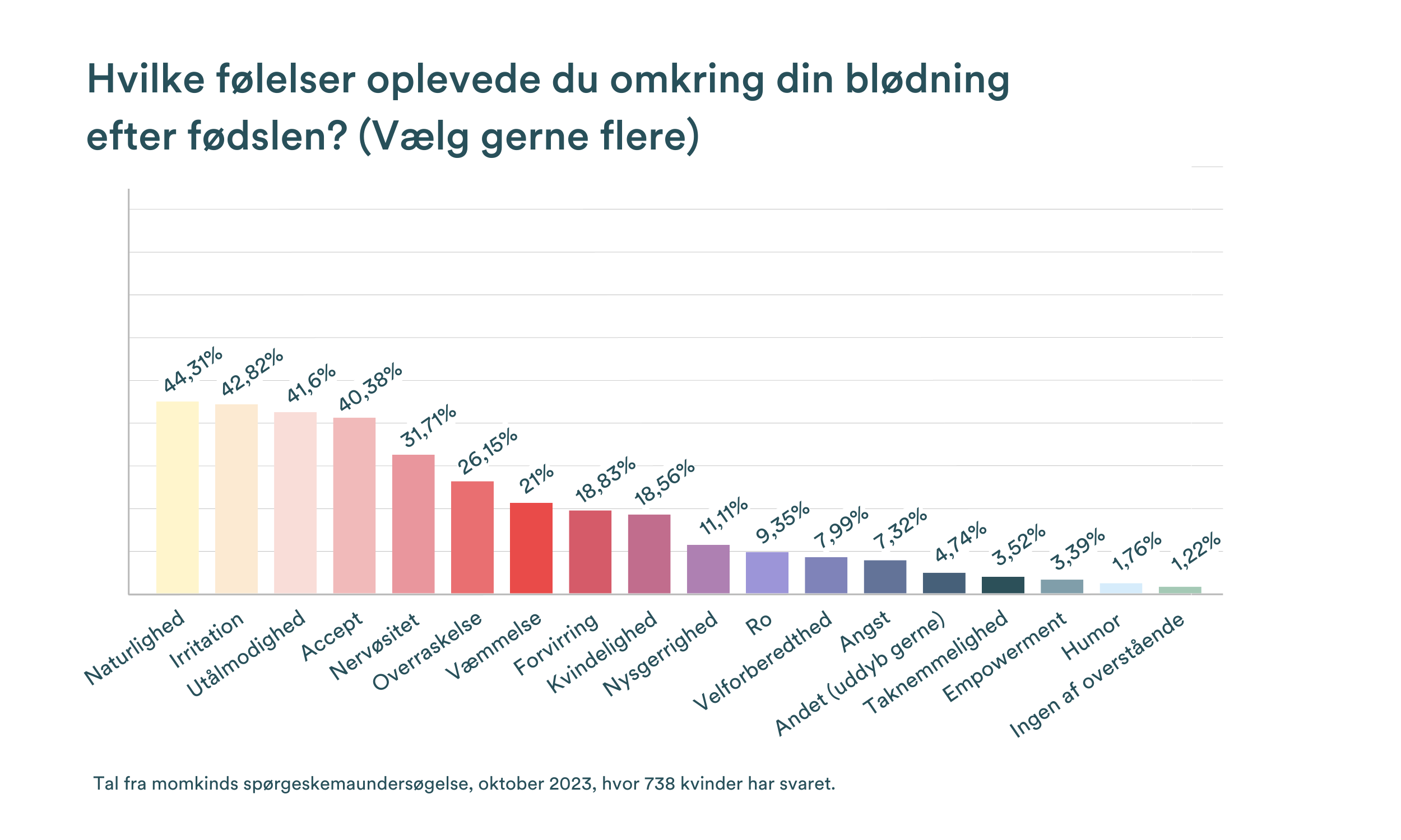 I den forbindelse ønskede vi at undersøge, hvordan fødende kvinder egentlig har det med at bløde efter fødslen. Hos momkind er det nemlig en af vores fornemmeste opgaver at afmystificere den fødende krop og sørge for, at ingen føler sig alene.