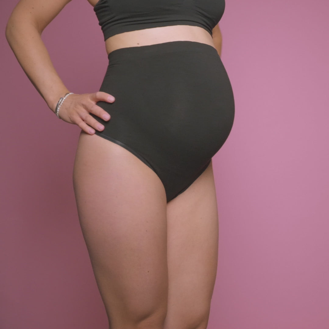 G-streng til den gravide krop strikket i viskose af økologisk bambus og med blød frotté i skridtet.