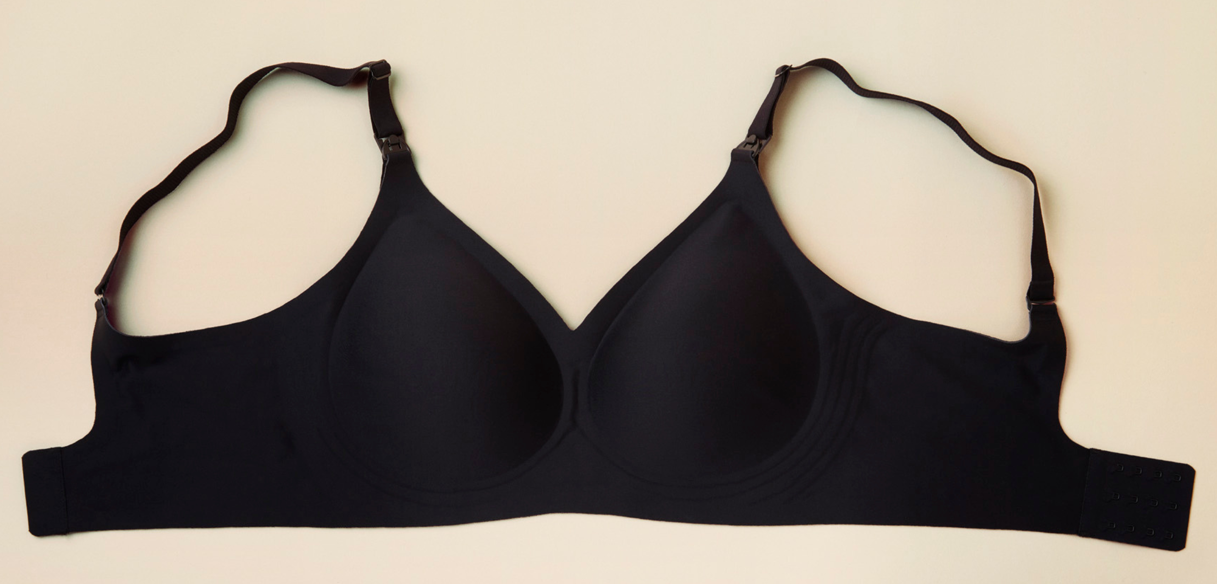 Ultrablød sømløs amme bh med vattering. Uden bøjler eller syninger. Nem adgang til brystet med klik-åbning. Bh-forlænger medfølger.